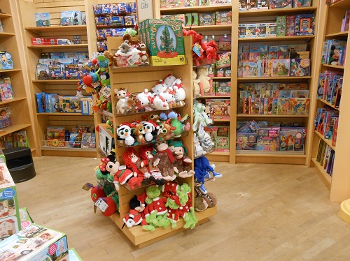 Another anchor shop that is in Jefferson Pointe is Barnes and Noble, with it’s familiar scent of coffee, sandwiches, and literary riches. Although this bookstore has less emphasis on holiday decorating, there are still busy shoppers hurrying past with armloads of books and other goods. One family trooped by with what looked like the entire Harry Potter series, bound for the checkout lane. And in the children’s section, there’s a wonderful treasure trove of plush animals, tiny figurines, and classic children’s books. How about a stuffed Rudolph, from the classic TV show? Or a cute box of Calico Pals, all dressed up and ready to play pretend?