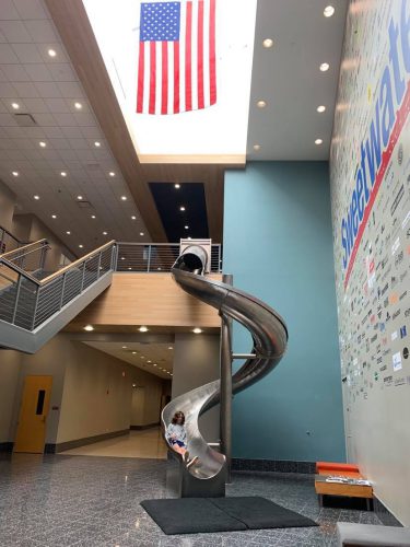 Demo rooms provide a bit of privacy if you’re feeling a bit shy about performing, and the drum kits and instruments with amps in the public areas are connected to listening headphones so you can rock out as loud as you want without disturbing other patrons. Whatever you do, don’t miss the chance to take a spin down the two-story slide.